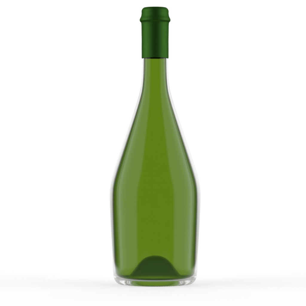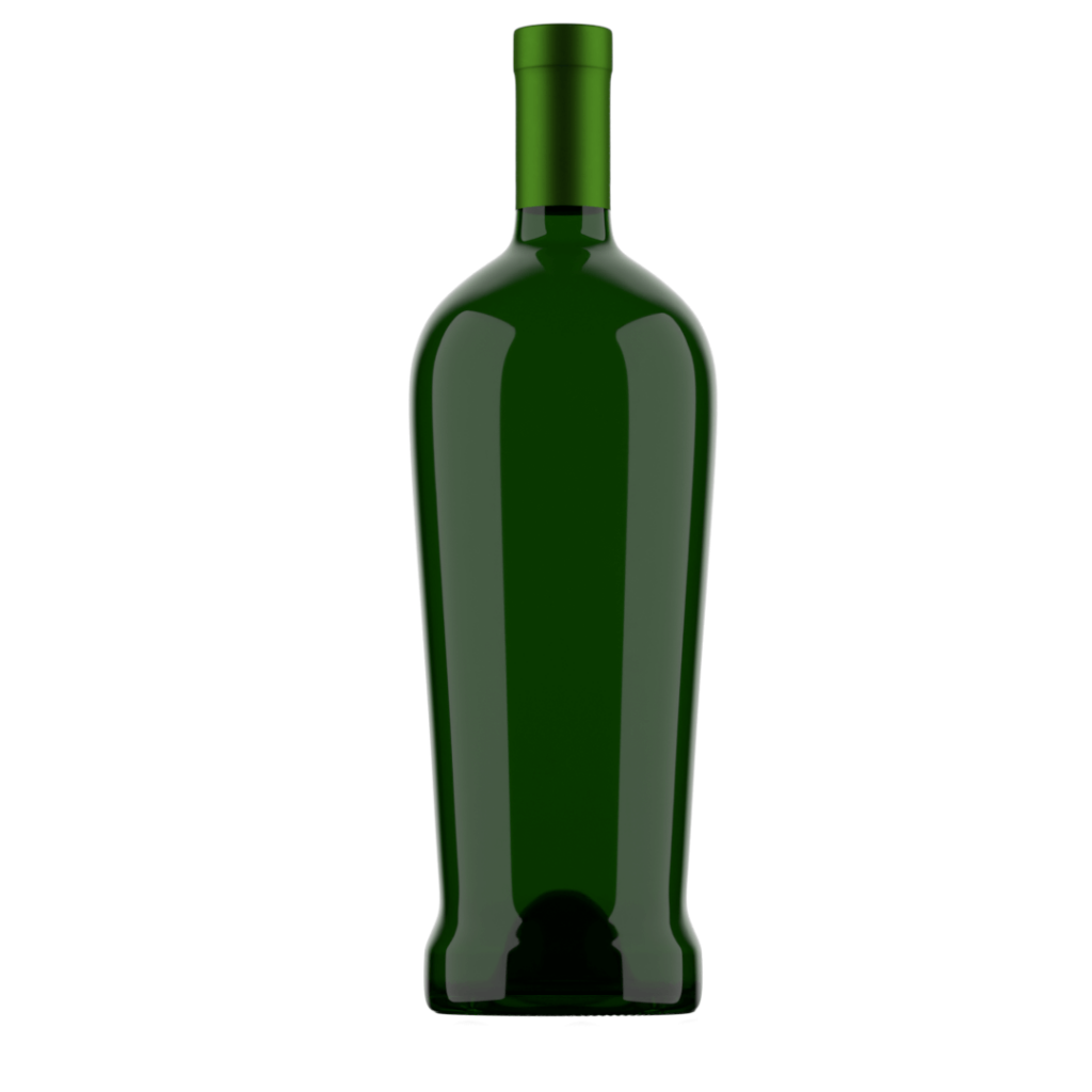 Tall, tapered, Pinot Grigio wine bottle, green metallic shrink, with cork, green glass bottle.