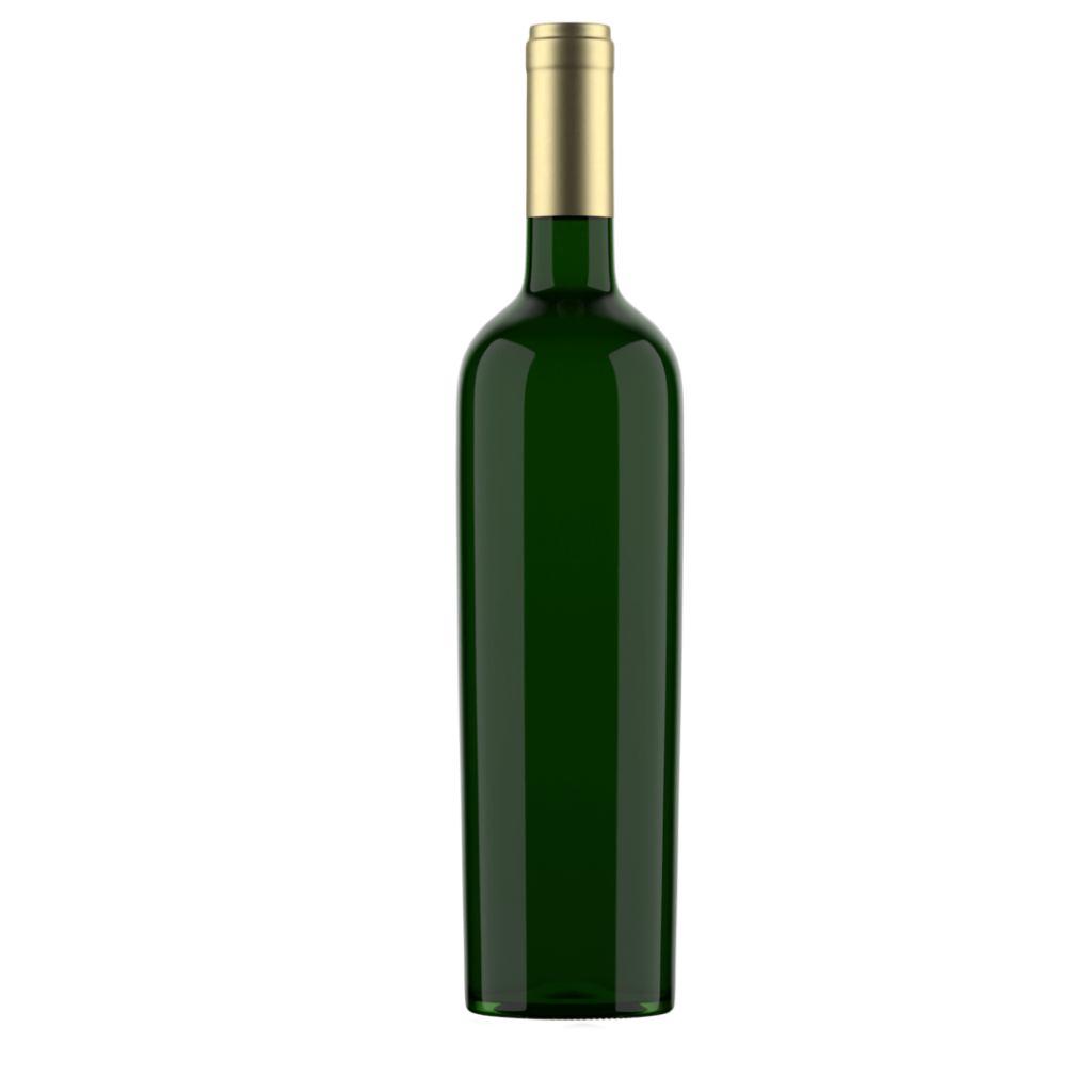 Tall, Pinot Grigio wine bottle, gold metallic shrink, with cork, green glass bottle.